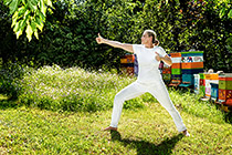 Im Ayurveda geht man von einer biologischen, natürlichen, bewussten Lebenshaltung aus; das heißt unter anderem für mich, den Bienen für die Überwinterung ihren eigenen Honig als Futterquelle zu überlassen und ich singe singe gerne Mantras bei meinen Bienenstöcken. Das versetzt meine Bienen und mich in einen ruhigen, friedlichen Zustand und öffnet den Raum für die feinstofflichen Energien. In der Meditation verbinde ich mich mit dem BIEN, versuche ihn zu fühlen und seine Bedürfnisse zu erkennen. Es heißt der BIEN versteht mich! Ich kann ihn nicht hören, aber ich kann ihn spüren und weiß, dass er mir seine Aufmerksamkeit schenkt. In diesen wundersamen Momenten gebe ich dem BIEN gerne eine „Oneness Deeksha“, eine spezielle Form des Energieflusses. Die durch göttliche Gnade übertragene Energie stärkt meine Bienen in ihrem gesamten Dasein.